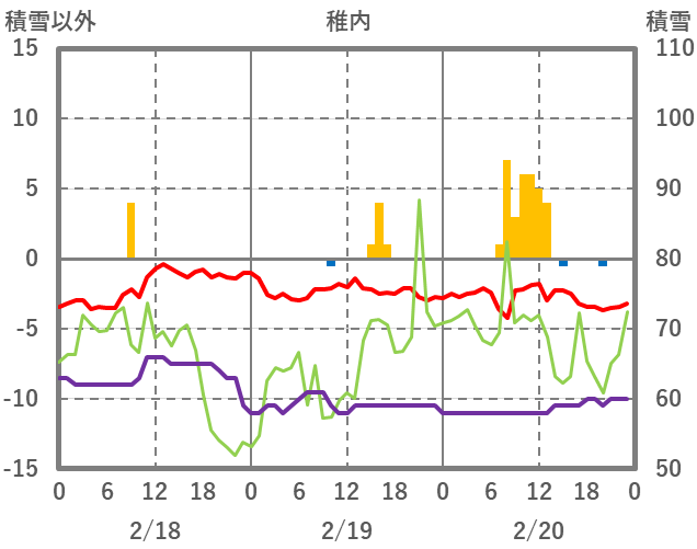 | 日 | 時 | 気温 | 降水 | 風向/風速 | 日照 | 積雪 | 降雪 |