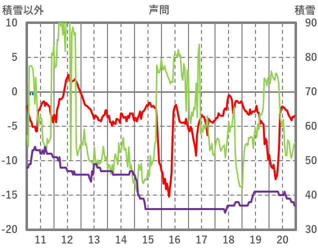 | 日 | 時 | 気温 | 降水 | 風向/風速 | 日照 | 積雪 | 降雪 |