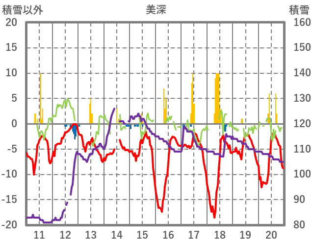 | 日 | 時 | 気温 | 降水 | 風向/風速 | 日照 | 積雪 | 降雪 |
