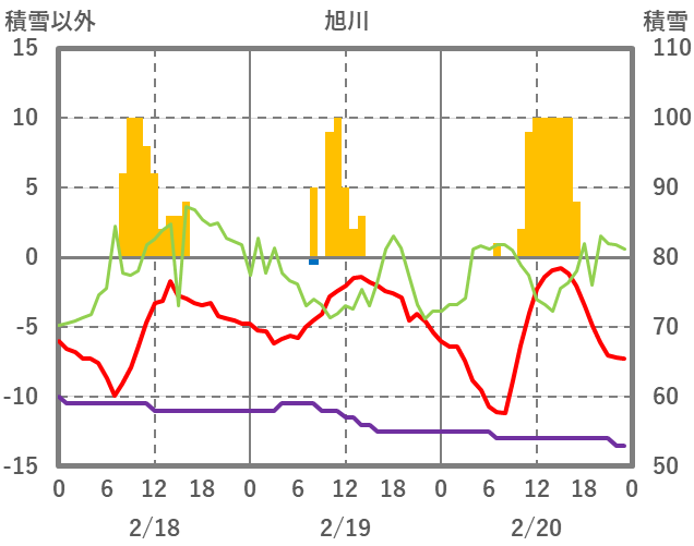 | 日 | 時 | 気温 | 降水 | 風向/風速 | 日照 | 積雪 | 降雪 |
