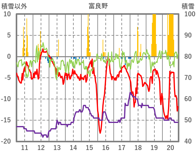 | 日 | 時 | 気温 | 降水 | 風向/風速 | 日照 | 積雪 | 降雪 |
