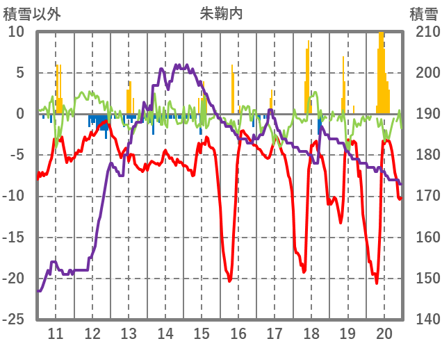 | 日 | 時 | 気温 | 降水 | 風向/風速 | 日照 | 積雪 | 降雪 |