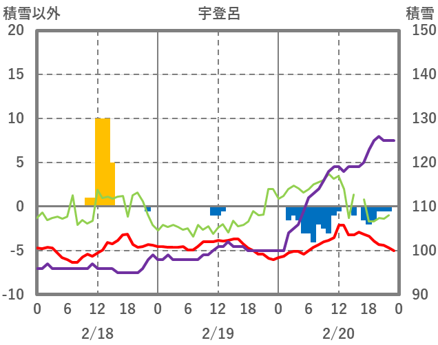 | 日 | 時 | 気温 | 降水 | 風向/風速 | 日照 | 積雪 | 降雪 |
