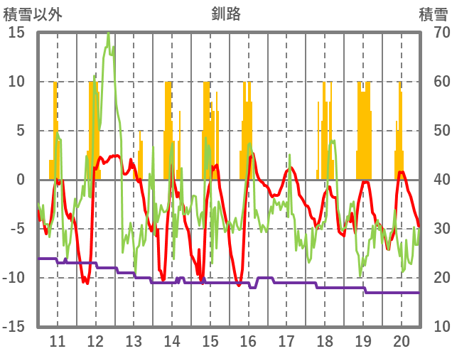 | 日 | 時 | 気温 | 降水 | 風向/風速 | 日照 | 積雪 | 降雪 |