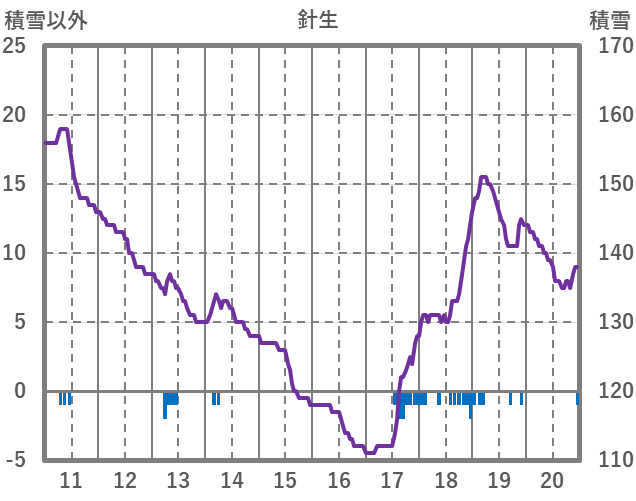 | 日 | 時 | 気温 | 降水 | 風向/風速 | 日照 | 積雪 | 降雪 |