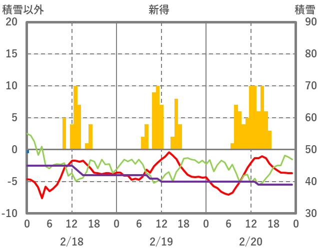 | 日 | 時 | 気温 | 降水 | 風向/風速 | 日照 | 積雪 | 降雪 |