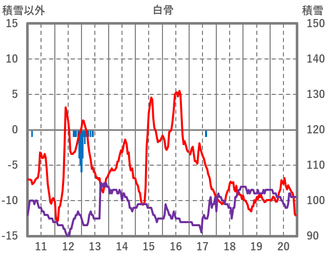 | 日 | 時 | 気温 | 降水 | 風向/風速 | 日照 | 積雪 | 降雪 |