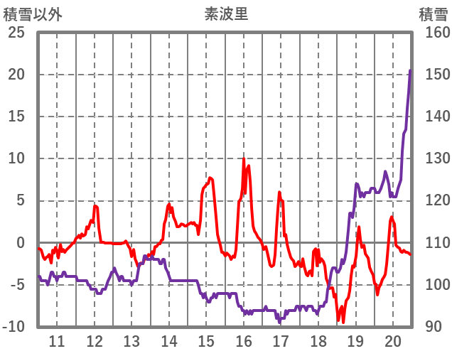 | 日 | 時 | 気温 | 降水 | 風向/風速 | 日照 | 積雪 | 降雪 |