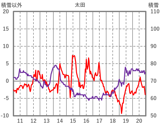 | 日 | 時 | 気温 | 降水 | 風向/風速 | 日照 | 積雪 | 降雪 |