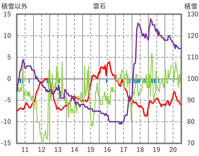 | 日 | 時 | 気温 | 降水 | 風向/風速 | 日照 | 積雪 | 降雪 |