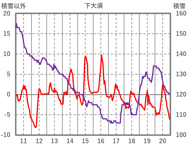 | 日 | 時 | 気温 | 降水 | 風向/風速 | 日照 | 積雪 | 降雪 |