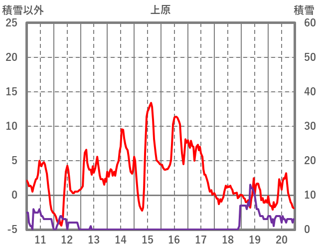 | 日 | 時 | 気温 | 降水 | 風向/風速 | 日照 | 積雪 | 降雪 |