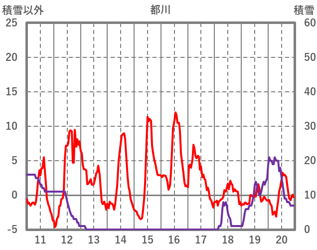 | 日 | 時 | 気温 | 降水 | 風向/風速 | 日照 | 積雪 | 降雪 |