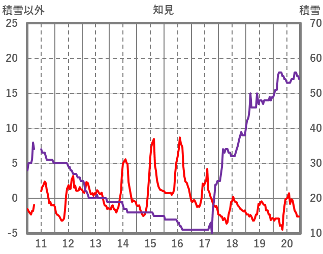 | 日 | 時 | 気温 | 降水 | 風向/風速 | 日照 | 積雪 | 降雪 |