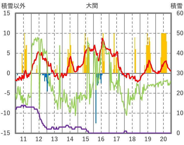 | 日 | 時 | 気温 | 降水 | 風向/風速 | 日照 | 積雪 | 降雪 |