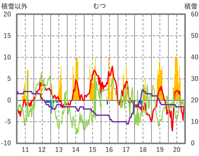 | 日 | 時 | 気温 | 降水 | 風向/風速 | 日照 | 積雪 | 降雪 |