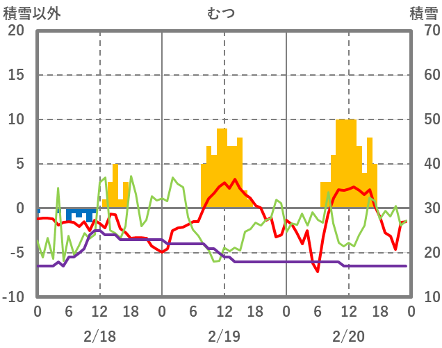 | 日 | 時 | 気温 | 降水 | 風向/風速 | 日照 | 積雪 | 降雪 |