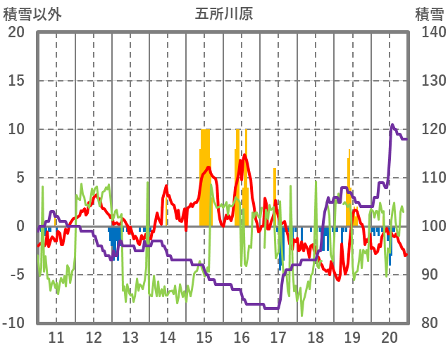 | 日 | 時 | 気温 | 降水 | 風向/風速 | 日照 | 積雪 | 降雪 |
