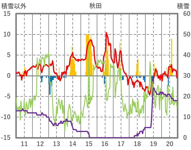 | 日 | 時 | 気温 | 降水 | 風向/風速 | 日照 | 積雪 | 降雪 |