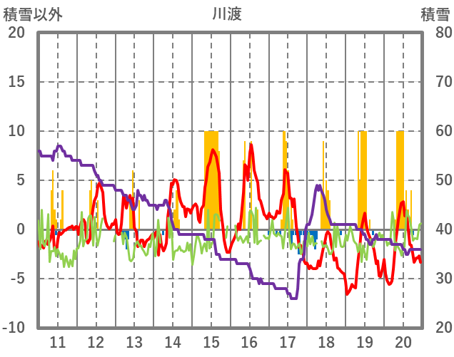 | 日 | 時 | 気温 | 降水 | 風向/風速 | 日照 | 積雪 | 降雪 |