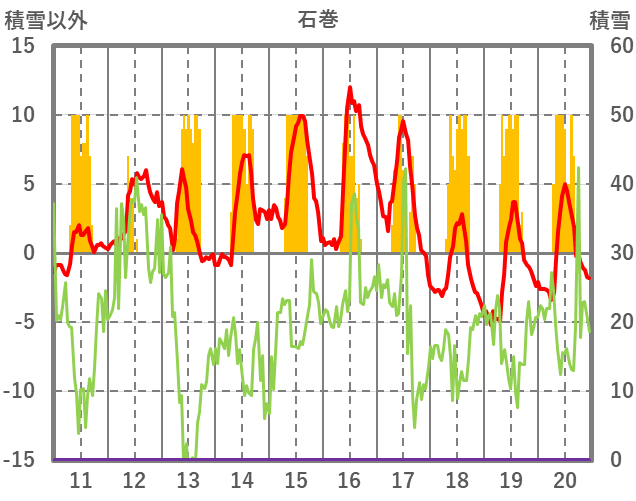 | 日 | 時 | 気温 | 降水 | 風向/風速 | 日照 | 積雪 | 降雪 |