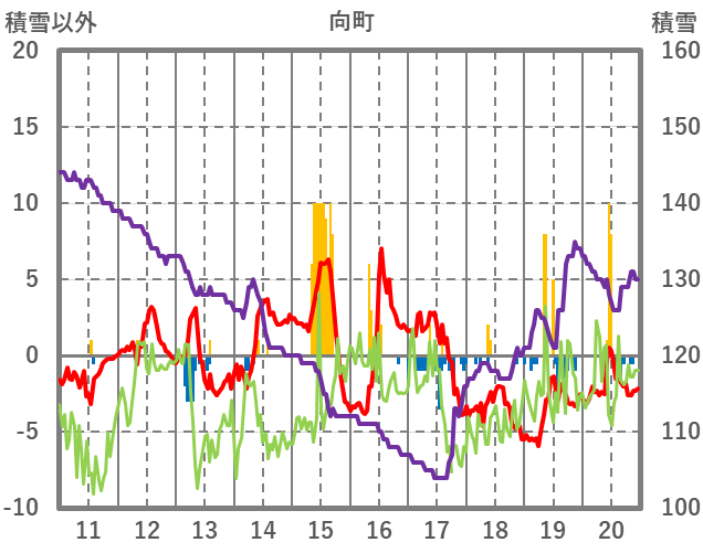 | 日 | 時 | 気温 | 降水 | 風向/風速 | 日照 | 積雪 | 降雪 |