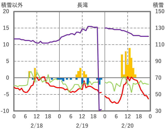 | 日 | 時 | 気温 | 降水 | 風向/風速 | 日照 | 積雪 | 降雪 |
