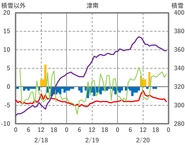 | 日 | 時 | 気温 | 降水 | 風向/風速 | 日照 | 積雪 | 降雪 |