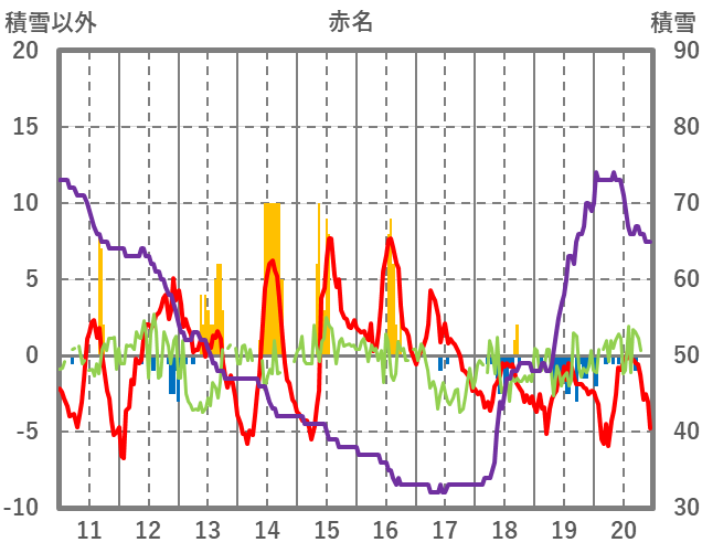 | 日 | 時 | 気温 | 降水 | 風向/風速 | 日照 | 積雪 | 降雪 |