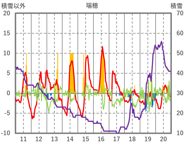 | 日 | 時 | 気温 | 降水 | 風向/風速 | 日照 | 積雪 | 降雪 |