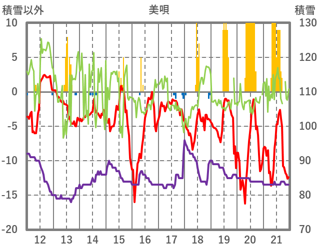 | 日 | 時 | 気温 | 降水 | 風向/風速 | 日照 | 積雪 | 降雪 |