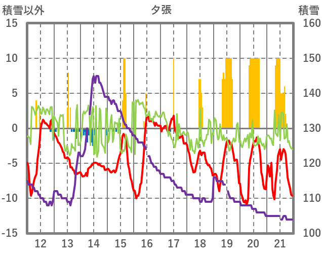 | 日 | 時 | 気温 | 降水 | 風向/風速 | 日照 | 積雪 | 降雪 |