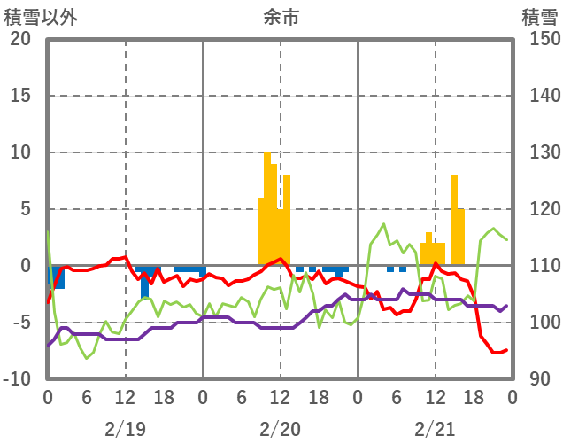 | 日 | 時 | 気温 | 降水 | 風向/風速 | 日照 | 積雪 | 降雪 |