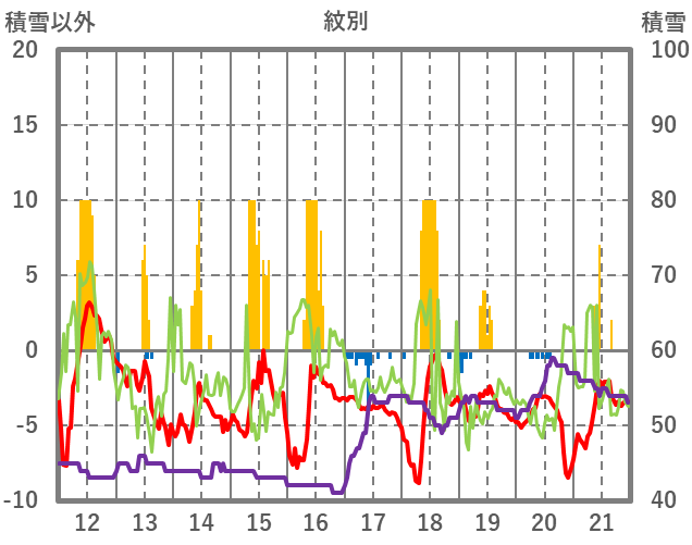 | 日 | 時 | 気温 | 降水 | 風向/風速 | 日照 | 積雪 | 降雪 |