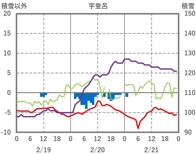 | 日 | 時 | 気温 | 降水 | 風向/風速 | 日照 | 積雪 | 降雪 |