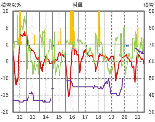 | 日 | 時 | 気温 | 降水 | 風向/風速 | 日照 | 積雪 | 降雪 |