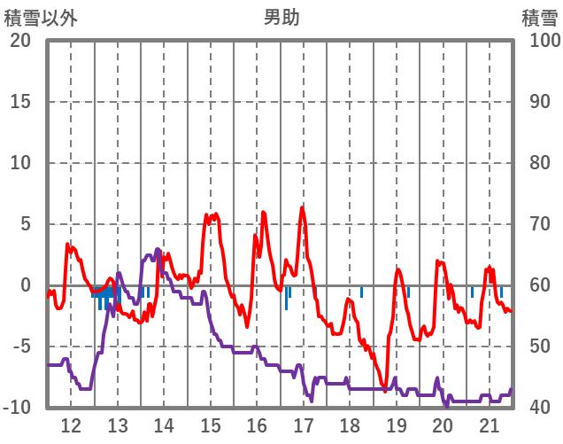 | 日 | 時 | 気温 | 降水 | 風向/風速 | 日照 | 積雪 | 降雪 |