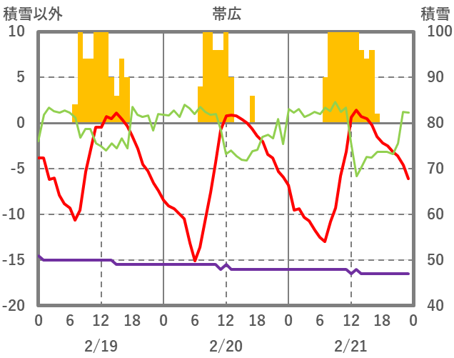 | 日 | 時 | 気温 | 降水 | 風向/風速 | 日照 | 積雪 | 降雪 |