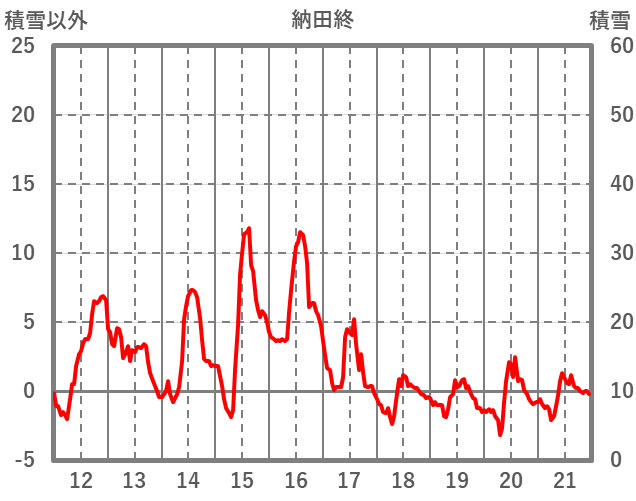 | 日 | 時 | 気温 | 降水 | 風向/風速 | 日照 | 積雪 | 降雪 |