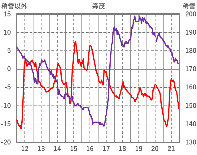 | 日 | 時 | 気温 | 降水 | 風向/風速 | 日照 | 積雪 | 降雪 |