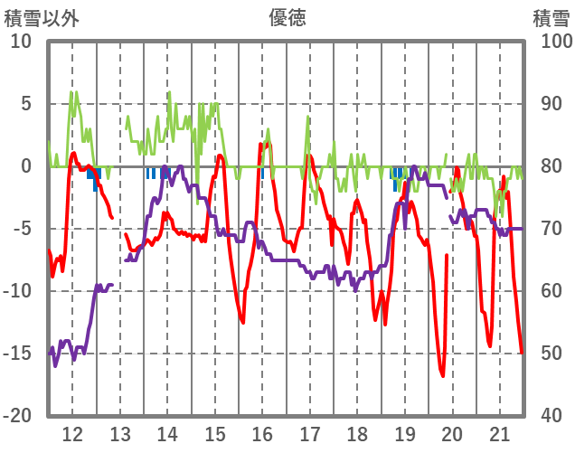 | 日 | 時 | 気温 | 降水 | 風向/風速 | 日照 | 積雪 | 降雪 |