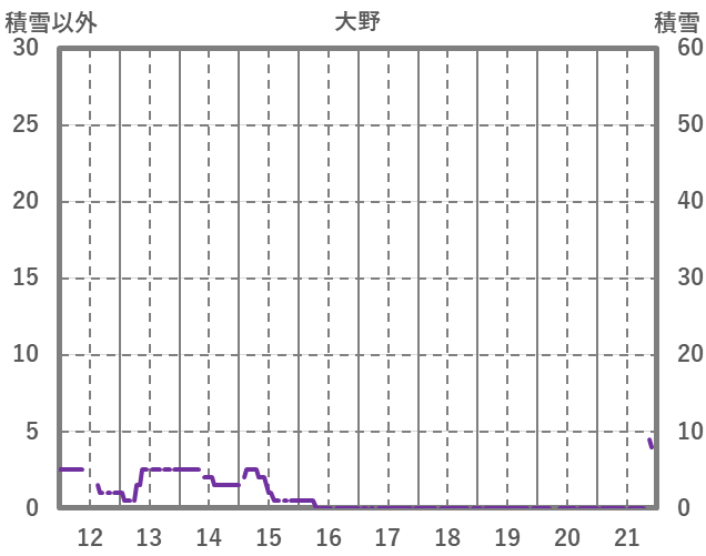 | 日 | 時 | 気温 | 降水 | 風向/風速 | 日照 | 積雪 | 降雪 |