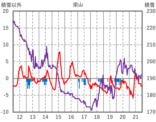 | 日 | 時 | 気温 | 降水 | 風向/風速 | 日照 | 積雪 | 降雪 |