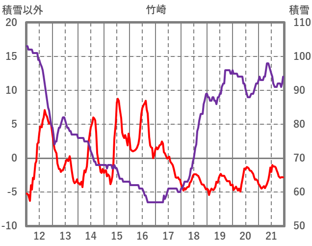 | 日 | 時 | 気温 | 降水 | 風向/風速 | 日照 | 積雪 | 降雪 |