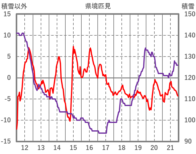| 日 | 時 | 気温 | 降水 | 風向/風速 | 日照 | 積雪 | 降雪 |