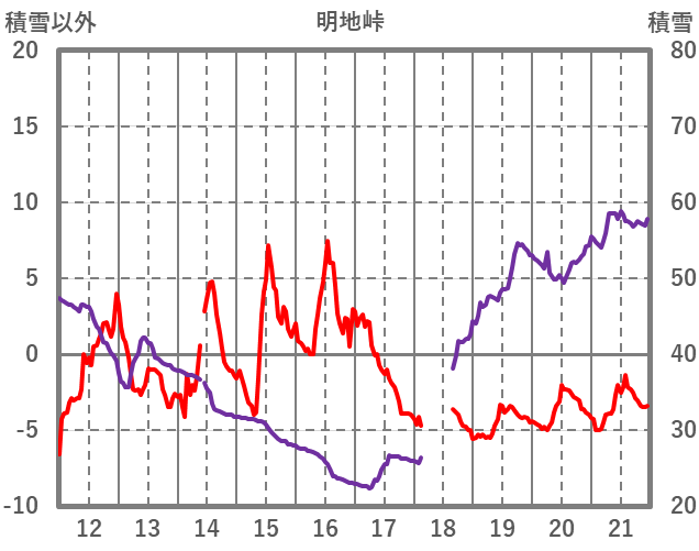 | 日 | 時 | 気温 | 降水 | 風向/風速 | 日照 | 積雪 | 降雪 |