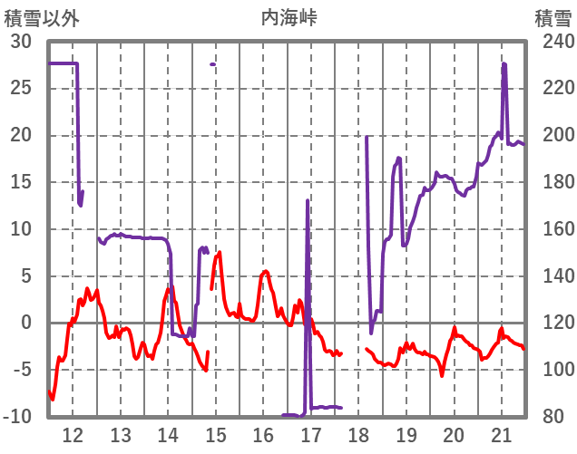 | 日 | 時 | 気温 | 降水 | 風向/風速 | 日照 | 積雪 | 降雪 |