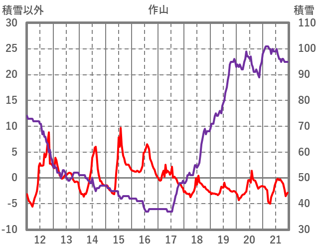 | 日 | 時 | 気温 | 降水 | 風向/風速 | 日照 | 積雪 | 降雪 |