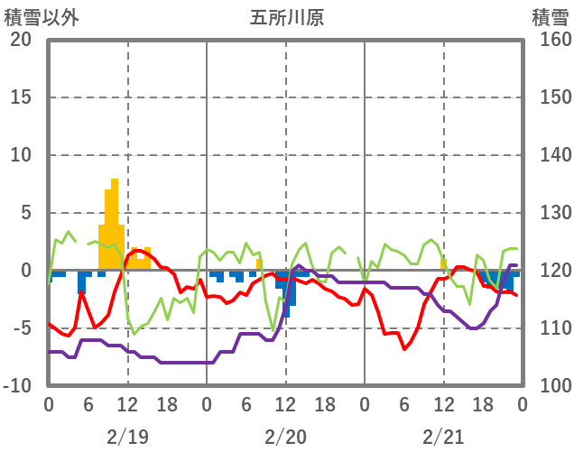 | 日 | 時 | 気温 | 降水 | 風向/風速 | 日照 | 積雪 | 降雪 |
