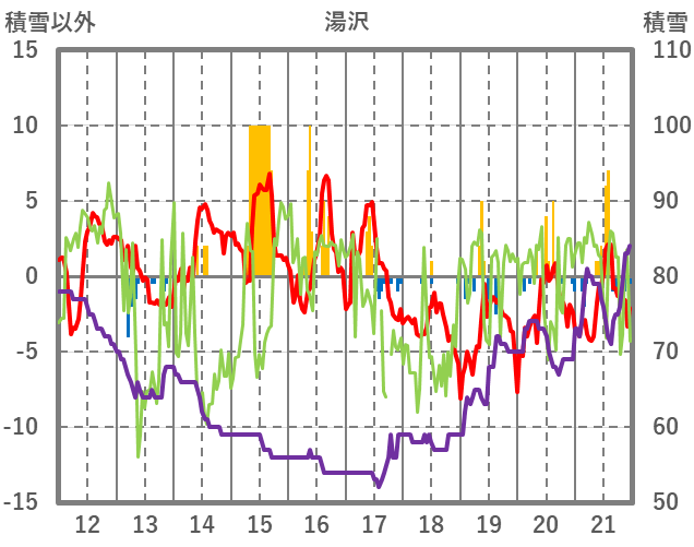 | 日 | 時 | 気温 | 降水 | 風向/風速 | 日照 | 積雪 | 降雪 |